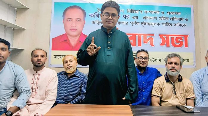 মোহাম্মদ আমিনুল ইসলাম চট্টগ্রাম বাঁশখালী প্রতিনিধি দৈনিক স্বদেশ বিচিত্রা’র সম্পাদক ও প্রকাশক কবি অশোক ধর এর প্রাণনাশ চেষ্টার প্রতিবাদ ও জড়িতদের গ্রেফতার পূর্বক দৃষ্টান্তমূলক শাস্তির দাবিতে প্রতিবাদ সভা স্বদেশ বিচিত্রা,