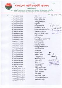 বিজয়-২৪ হলে সভাপতি গাজী ফেরদৌস হাসান ও সাধারণ সম্পাদক বদিউজ্জামান রাকিব, মাদার বখ্শ হলে সভাপতি কাজী তানভীর আহসান ও সাধারণ সম্পাদক সাইক রহমান, শহীদ জিয়াউর রহমান হলে সভাপতি রিয়াজুল ইসলাম ও সাধারণ সম্পাদক সাইমুন ইবনে অরন।