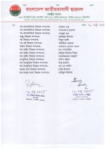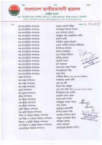 হল কমিটিগুলোকে আগামী সাত দিনের মধ্যে পূর্ণাঙ্গ করার নির্দেশ দিয়েছে কেন্দ্রীয় ছাত্রদল। এর আগে চাঁদাবাজির অভিযোগে বহিষ্কৃত তিন নেতার শাস্তি প্রত্যাহার করা হয়। তাঁরা নবঘোষিত কমিটিতে নতুন পদ পেয়েছেন। এর মধ্যে আহসান হাবিব ও ফারুক হোসেন হয়েছেন সহসভাপতি এবং হাসিবুল হাসান হয়েছেন যুগ্ম সাধারণ সম্পাদক।