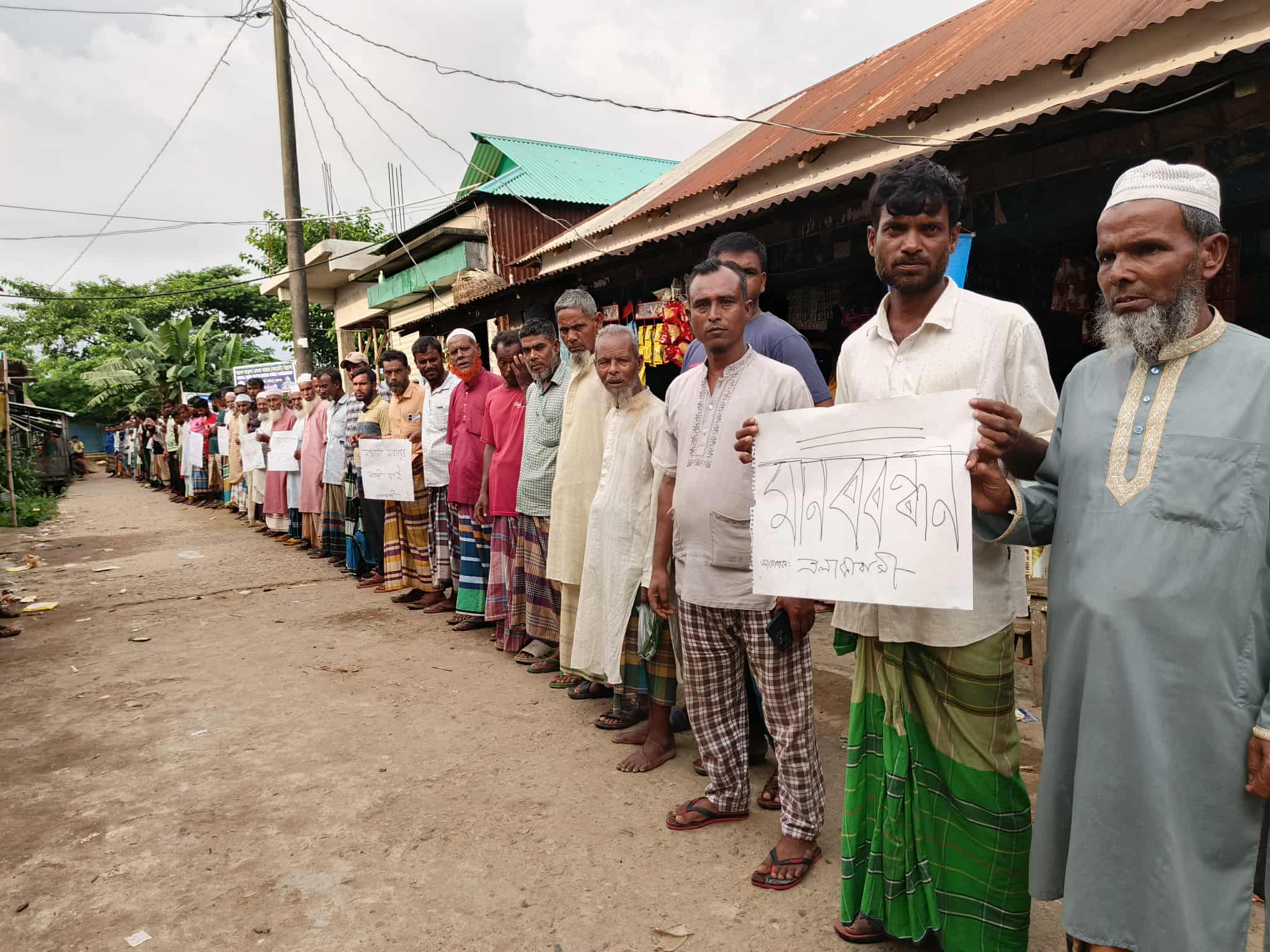 এ ঘটনায় আওয়ামী লীগ নেতা সন্ত্রাসী নবাব মিয়া ও তার সহযোগীদের দ্রুত গ্রেপ্তার ও দৃষ্টান্ত মূলক শাস্তির দাবিতে মানববন্ধন করে এলাকাবাসী। আজ ১২ সেপ্টেম্বর শুক্রবার বিকাল ৫ টার সময় উপজেলার দক্ষিণ বড়দল ইউনিয়নের একতা বাজারে এলাকাবাসীর আয়োজনে এক মানববন্ধন কর্মসূচি পালন করে। ঘন্টাব্যাপী মানববন্ধনে বক্তারা বলেন, বিএনপি নেতা ইসমাইল হোসেন হতদরিদ্র একজন ভালো মানুষ। গত ৬ সেপ্টেম্বর উপজেলার উত্তর বড়দল ইউনিয়নের দ্বিবার্ষিক সম্মেলনে ভোট দিতে নিজ বাড়ি আমতৈল থেকে একতা বাজারে আসলে সন্ত্রাসী নবাব মিয়াসহ ১০/১৫ জনের একটি সন্ত্রাসী গ্রুপ দেশীয় অস্ত্রশস্ত্র নিয়ে নিয়ে হামলা করে। এ সময় বিএনপি নেতা ইসমাইলকে এলোপাতাড়ি কুপিয়ে মাথা, হাতে ও পায়ে গুরুতর আহত করে। এঘটনায় ইসমাইলে বোন জহুরা খাতুন বাদি হয়ে নবাব মিয়া ও তার সহযোগীদের আসামি করে তাহিরপুর থানায় একটি মামলা দায়ের করে। মামলা দায়েরের পার থেকে সন্ত্রাসী নবাব মিয়া ও তার সহযোগীরা ইসমাইলের পরিবারের লোকজন বিভিন্নভাবে হুমকি ধামকি ও ভয়ভীতি দেখাচ্ছে মামলা তুলে নিতে। এখন ইসমাইল ও তার পরিবারের লোকজন নিরাপত্তারহীনতায় আছে। এমনকি মামলা দায়েরের ৭ দিন পেরিয়ে গেলেও থানা পুলিশ কোন আসামীকেই গ্রেপ্তার করতে পারেনি। তারা আরও বলেন, আওয়ামী সন্ত্রাসী নবাব মিয়া আওয়ামী লীগ সরকারের আমলে এই এলাকায় দলীয় প্রভাব কাটিয়ে সন্ত্রাসী রাজত্ব কায়েম করে রাখে। শুধু তাই নয়! নবাব মিয়া পূর্বে চরগ্রাও গ্রামে বসবাস করত। সেখানে থাকার সময় নবাব মিয়া গ্রামের নারী-পুরুষসহ সবার উপরেই জোর জুলুম করত। সেএকটি হাত্যাকান্ডের ঘটনা ঘটায়। এ ঘটনায় নবাব মিয়া নামে সুনামগঞ্জ আদালতে একটি হত্যা মামলাসহ নবাব মিয়ার বিরুদ্ধে অত্যন্ত ১৫ থেকে ২০ মামলা চলমান আছে। তাই সন্ত্রাসী নবাব মিয়াসহ তার সহযোগীদের দ্রুত গ্রেপ্তার পূর্বক কঠিন শাস্তির দাবি জানিয়েছে আইনশৃঙ্খলা বাহিনী ঊর্ধ্বতন কর্মকর্তাদের কাছে। এ সময় মানববন্ধনে বক্তব্য রাখেন, শিবলু মিয়া, মাদুক মিয়া, হোসেন আলী, জালাল উদ্দিন ২ নং ওয়ার্ডের সভাপতি, রহমত আলী, উসমান গণী, সাদেক মিয়া, আব্দুল আলী, আমির আলী,