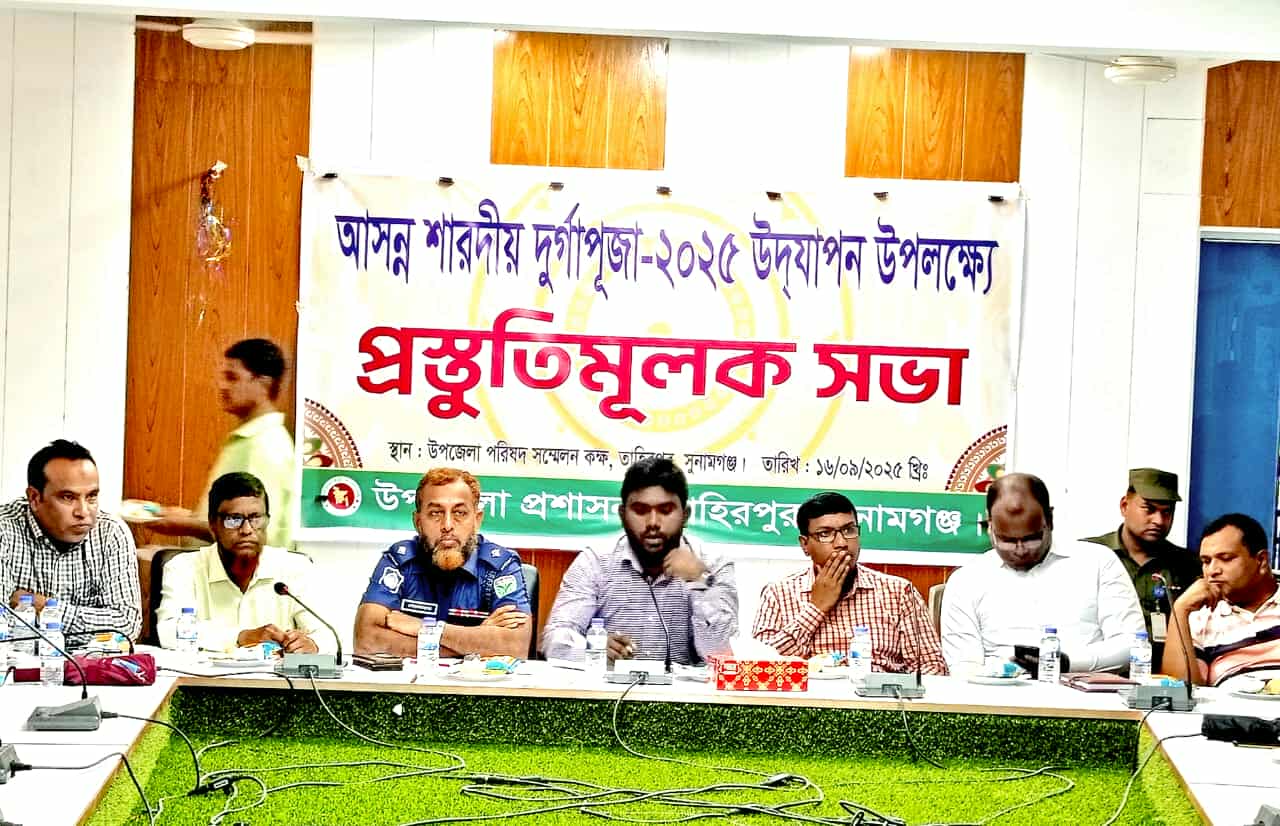 সুনামগঞ্জের তাহিরপুরে শারদীয় দুর্গাপূজা উপলক্ষ্যে প্রস্তুতি মূলক সভা অনুষ্ঠিত হয়েছে।