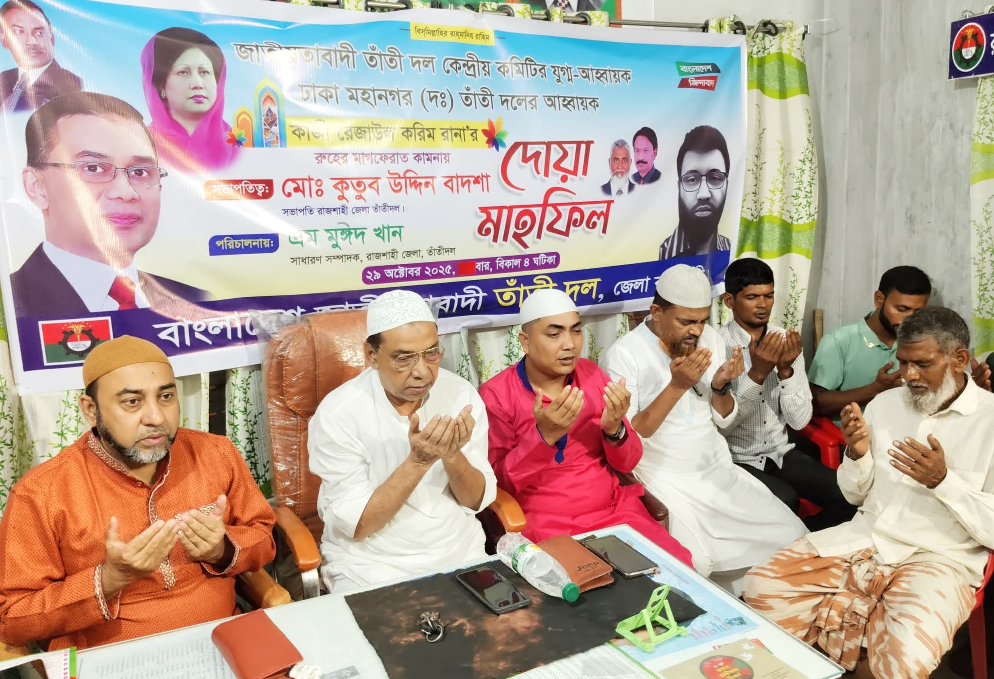 অনুষ্ঠানে সভাপতিত্ব করেন রাজশাহী জেলা তাঁতীদলের সভাপতি মোঃ কুতুব উদ্দিন বাদশা এবং সঞ্চালনা করেন সাধারণ সম্পাদক এম. মুঈদ খান।