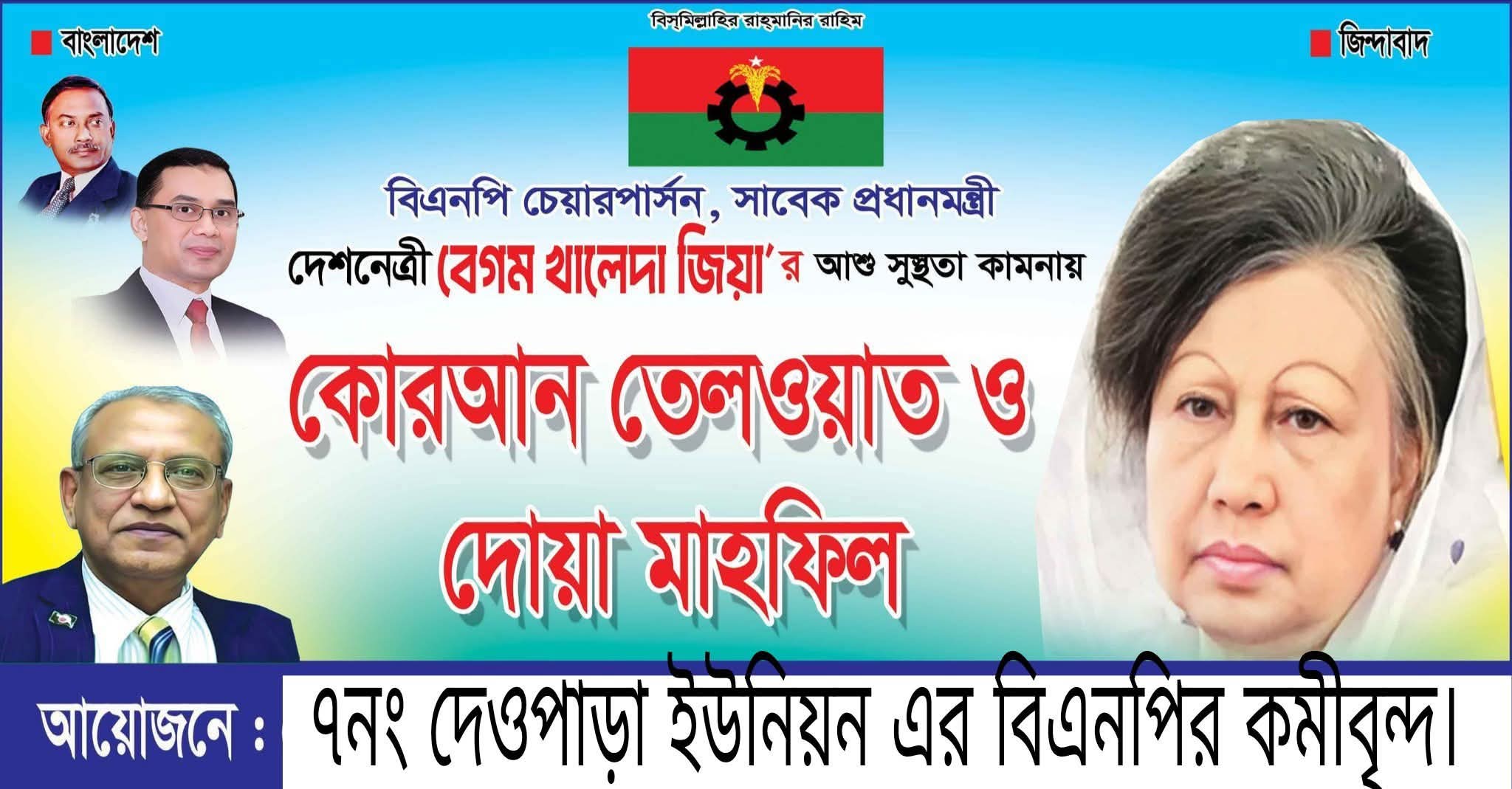আয়োজনে: ৭নং দেওপাড়া ইউনিয়নের বিএনপির কর্মীরা।