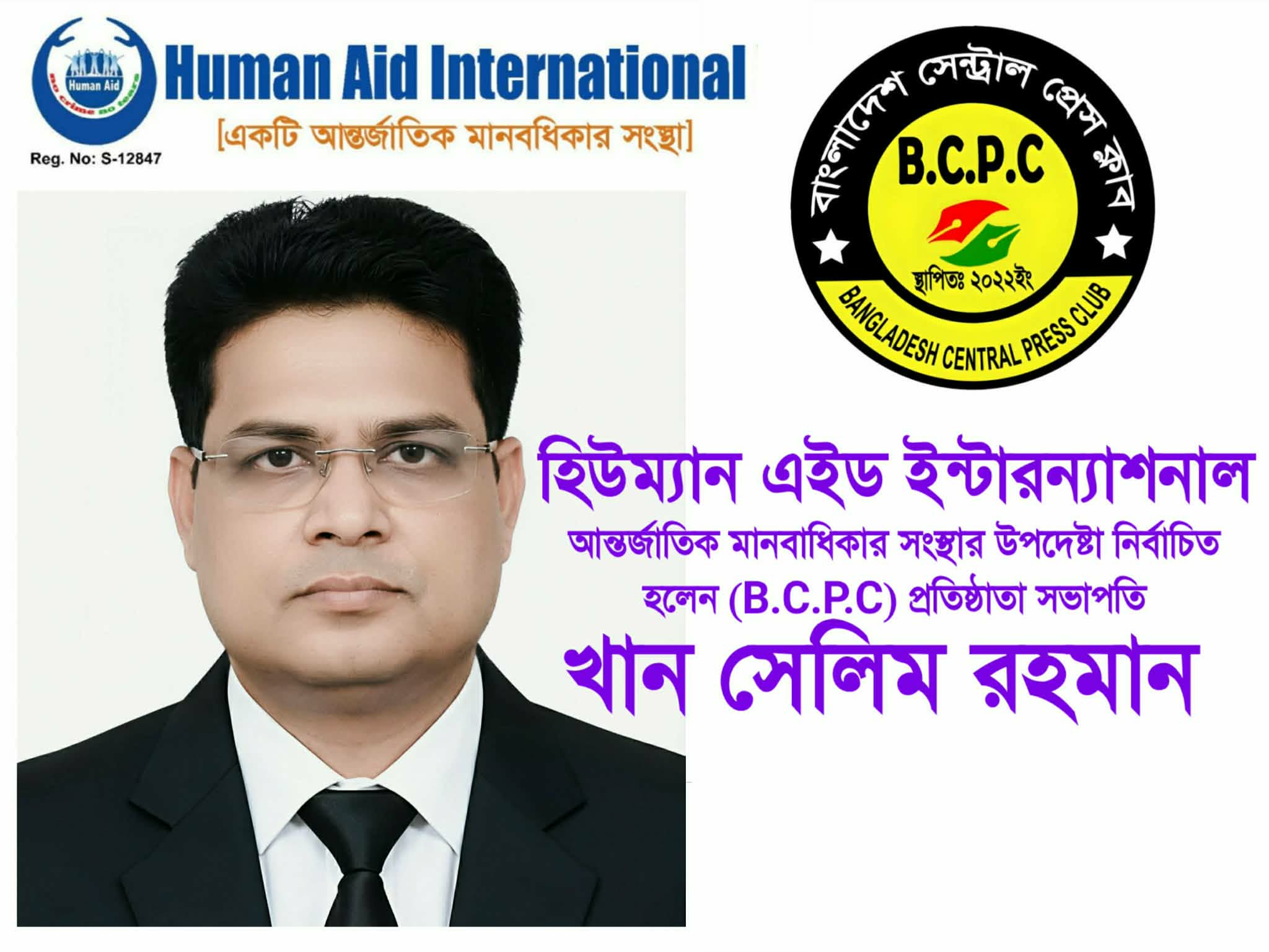 বাংলাদেশ সেন্ট্রাল প্রেস ক্লাব (B.C.P.C)-এর প্রতিষ্ঠাতা সভাপতি, বিশিষ্ট সাংবাদিক ও মানবাধিকার কর্মী খান সেলিম রহমান আন্তর্জাতিক মানবাধিকার সংস্থা এর উপদেষ্টা পরিষদের স্থায়ী সদস্য হিসেবে নির্বাচিত হয়েছেন। তাঁর এ নির্বাচনে দেশের মানবাধিকার অঙ্গন, সাংবাদিক সমাজ ও সুশীল মহলে ব্যাপক সন্তোষ ও আশাবাদ ব্যক্ত করা হয়েছে।