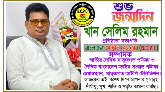নিজস্ব প্রতিবেদক:- আজ ১১ ডিসেম্বর ২০২৫। বাংলাদেশ সেন্ট্রাল প্রেস ক্লাব (B.C.P.C)-এর প্রতিষ্ঠাতা সভাপতি,জাতীয় দৈনিক মাতৃজগত পত্রিকা ও দৈনিক বাংলাদেশ ক্রাইম সংবাদ পত্রিকার সম্পাদক, মাতৃজগত আইপি টেলিভিশন–এর চেয়ারম্যান দেশবরেণ্য সংগঠক, গণমাধ্যম