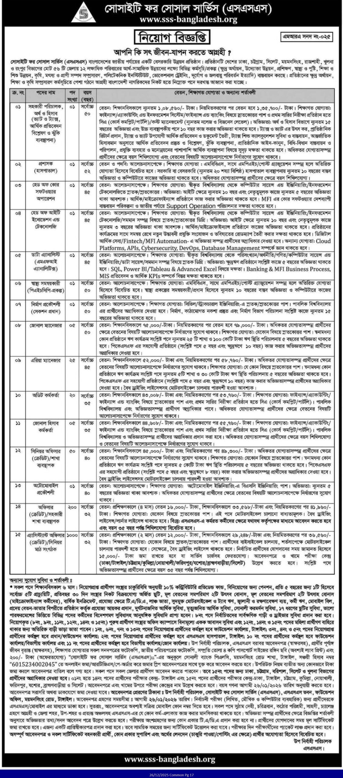 নিয়োগ সংক্রান্ত বিস্তারিত শর্তাবলি এবং পদভিত্তিক যোগ্যতার তথ্য জানতে সংস্থার অফিসিয়াল ওয়েবসাইট www.sss-bangladesh.org ভিজিট করার পরামর্শ দেওয়া হয়েছে।