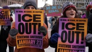 ট্রাম্পের দ্বিতীয় মেয়াদের বর্ষপূর্তির দিনে তার অভিবাসন দমননীতির বিরুদ্ধে দেশজুড়ে বিক্ষোভ ছড়িয়ে পড়ে। মিনিয়াপোলিসে ফেডারেল এজেন্টদের এক মার্কিন নাগরিক নারীকে গাড়ি থেকে টেনে নামানো এবং ৩৭ বছর বয়সী রেনে গুডকে গুলি করে হত্যার ঘটনায় দেশজুড়ে তীব্র ক্ষোভ তৈরি হয়েছে।