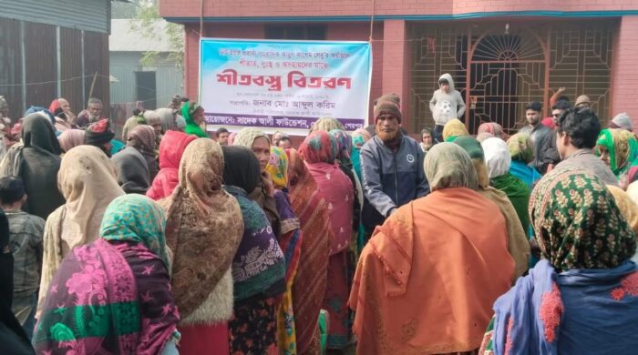 হাকিকুল ইসলাম খোকন,বাপসনিউজঃ শেরপুরে শীতার্ত হতদরিদ্র মানুষের হাতে কম্বল তুলে দিলেন সাদেক আলী ফাউন্ডেশন। গত শুক্রবার, ৯ জানুয়ারি ২০২৬ শেরপুরে সদর উপজেলাধীন চর জংগলদী গ্রামে মরহুম সাদেক আলীর নিজ বাড়িতে