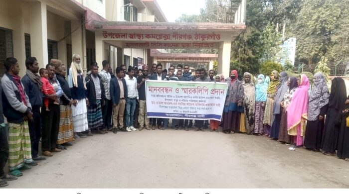 স্টাফ রিপোর্টার। পীরগঞ্জ স্বাস্থ্য কমপ্লেক্সে ডাক্তারের বদলীর আদেশ বাতিলের দাবীতে মঙ্গলবার হাসপাতাল চত্বরে পীরগঞ্জবাসী মানববন্ধন করেছে। মানববন্ধন শেষে উপজেলা নির্বাহী অফিসারের মাধ্যমে স্বাস্থ্য অধিদপ্তরের মহা-পরিচালক সহ সরকারি বিভিন্ন দপ্তরে স্মারকলিপি