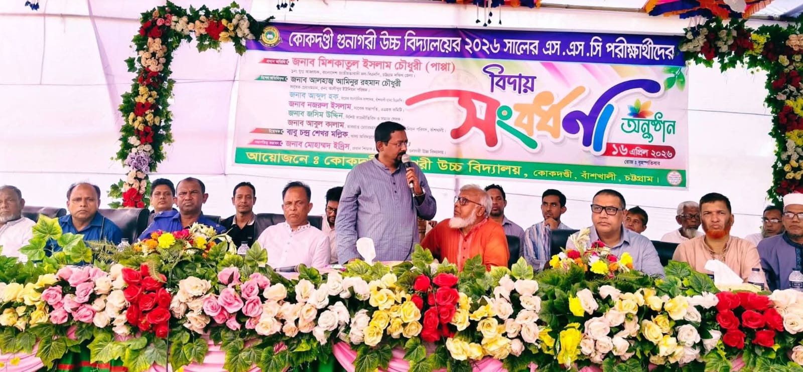 চট্টগ্রামের বাঁশখালী উপজেলার ঐতিহ্যবাহী শিক্ষা প্রতিষ্ঠান কোকদণ্ডী গুনাগরী উচ্চ বিদ্যালয়ে ২০২৬ সালের এস.এস.সি পরীক্ষার্থীদের বিদায় সংবর্ধনা ও বার্ষিক দোয়া মাহফিল অনুষ্ঠিত হয়েছে।