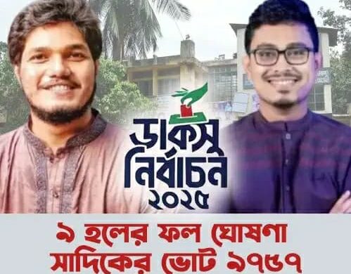 আবদুল কাদের চট্টগ্রাম রাত সাড়ে ৩টা পর্যন্ত ঢাকা বিশ্ববিদ্যালয় কেন্দ্রীয় ছাত্র সংসদ (ডাকসু) নির্বাচনের ৯টি হলের ফল ঘোষণা হয়েছে। এতে ঐক্যবদ্ধ শিক্ষার্থী জোটের ভিপি প্রার্থী মো. আবু সাদিক (সাদিম কায়েম)
