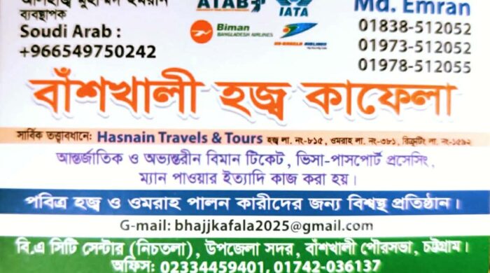 মোহাম্মদ আমিনুল ইসলাম চট্টগ্রাম বাঁশখালী প্রতিনিধি আলহামদুলিল্লাহ, মহান আল্লাহ তাআলার অশেষ রহমতে বাঁশখালী হজ্জ্ব কাফেলার ব্যবস্থাপক আলহাজ্ব মোহাম্মদ ইমরান এর বড় কন্যা পবিত্র কুরআনে হিফজ সম্পূর্ণ করেছেন। তিনি বাঁশখালী মদীনাতুল